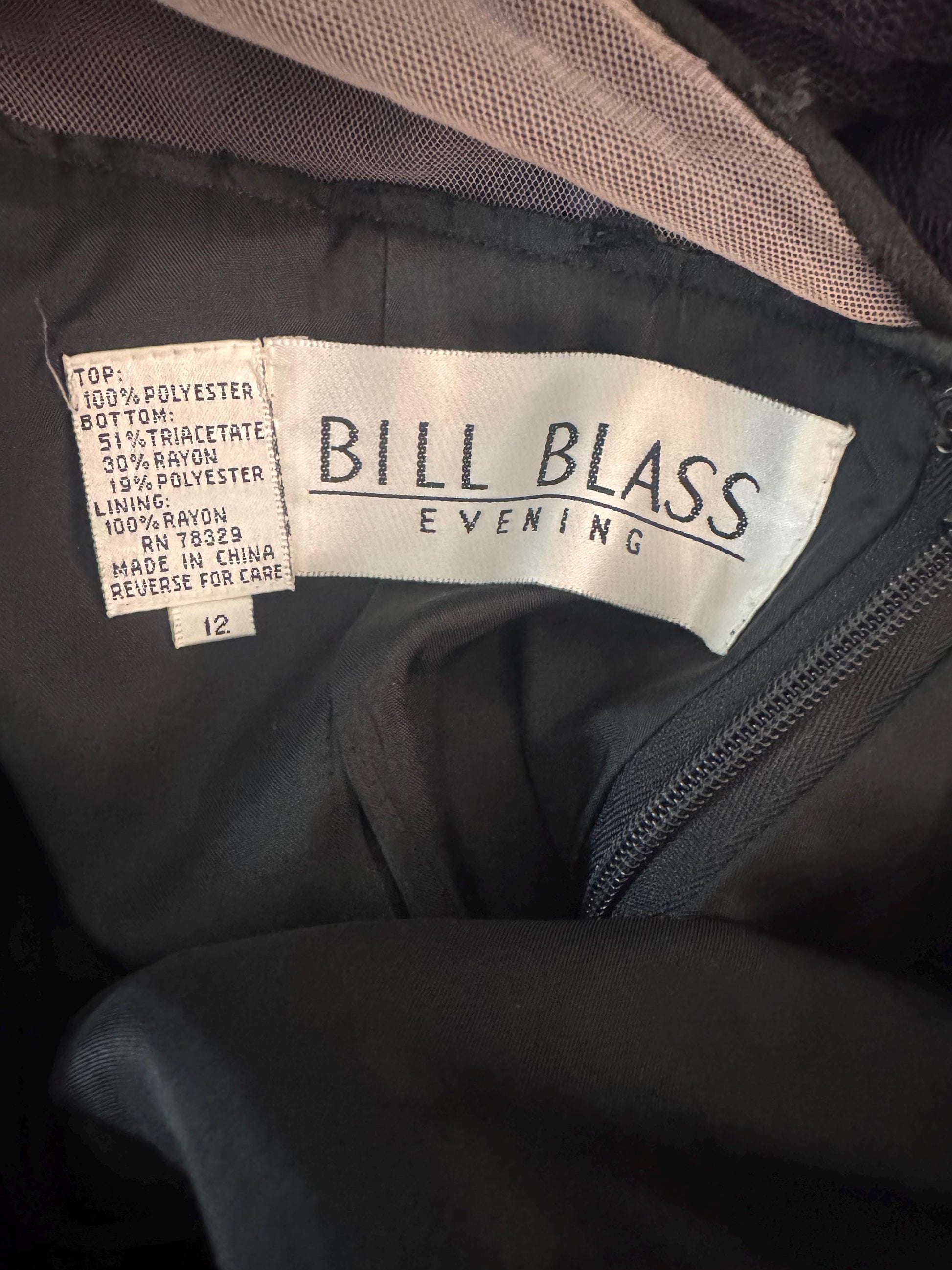 This stunning Bill Blass evening dress combines timeless elegance with modern sophistication, perfect for any formal occasion or special event. The design features a fitted black silhouette that flatters the figure while unique details add drama and charm.