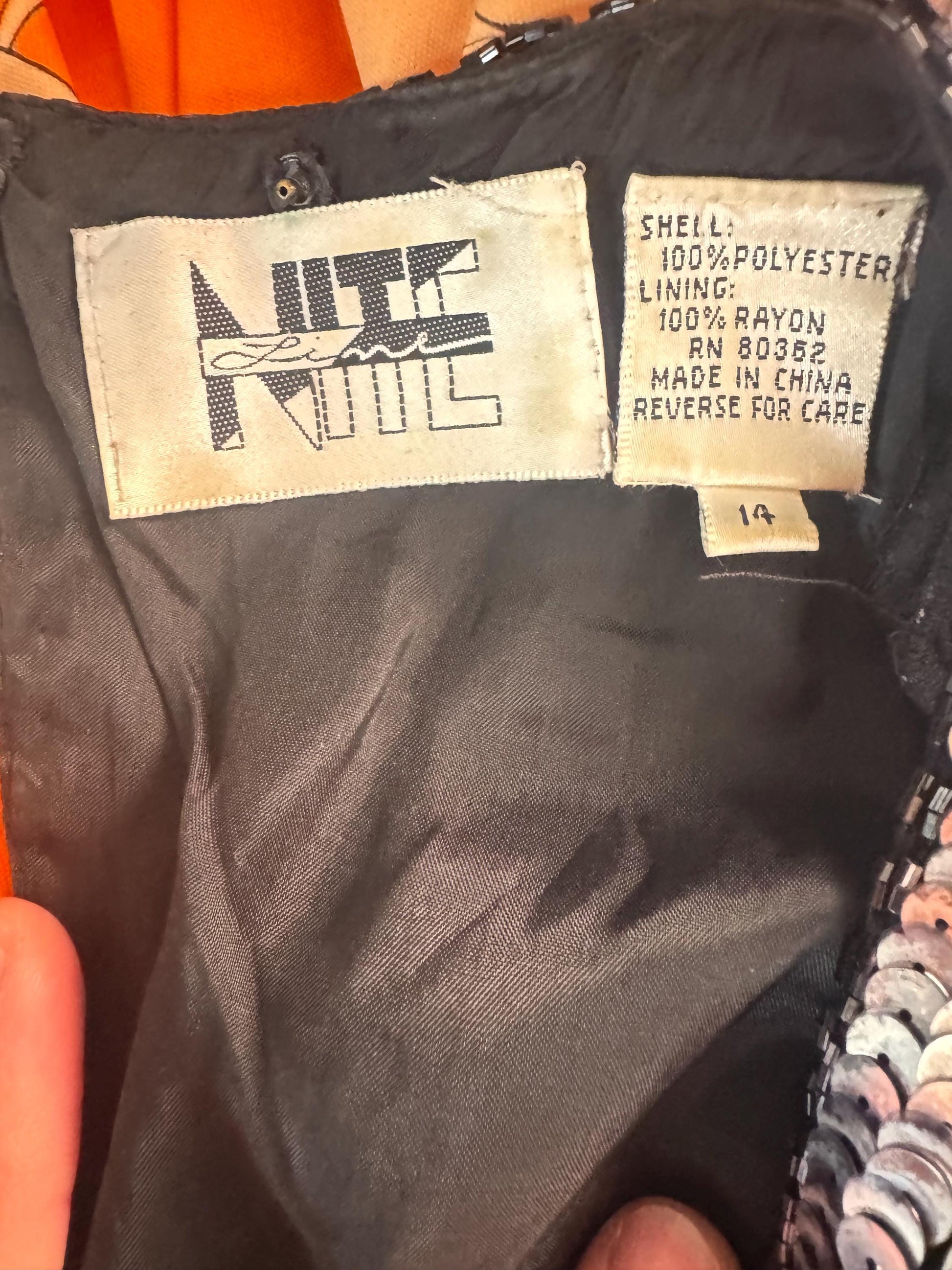 The shimmering beadwork, intricate detailing, and flowing pleated panels make this gown a showstopper. Its open-back design and vintage charm create a look that’s as bold as it is elegant. Elevate your formal wardrobe with this stunning vintage Nite Line dress!